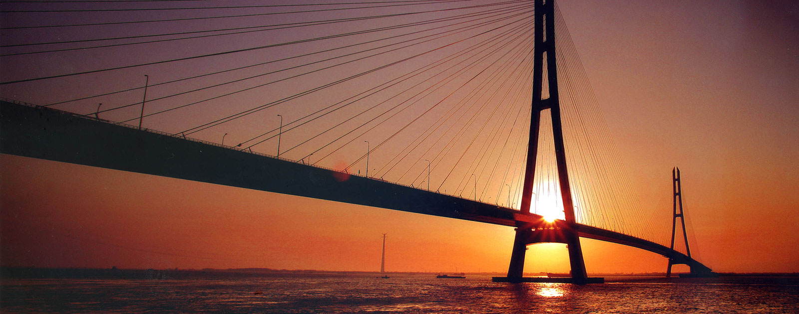 南京長江第三大橋(以下簡稱“南京三橋” ) 是滬蓉(上海至成都)國道主干線在南京地區跨越長江的重要過江通道,南起南京繞城公路劉村互通, 北至浦口境內寧合高速公路張店互通,全線15.6公里,按雙向六車道高速公路標準設計,其中跨江大橋長4744米,南岸接線為3083米,北岸接線為7773米,主跨為648米雙塔雙索面鋼塔鋼箱梁斜拉橋,橋塔高度為215米,最大通行高度為32米,可以通航萬噸級船舶。三橋全線共設劉村互通、天后村互通、高旺互通和張店互通四座互通立交;設服務區兩處,主線收費站一處。工程于2003年8月正式開工,2005年10月7日提前22個月建成通車,總投資33.9514億元,作為特大型橋梁的鋼塔鋼箱梁斜拉橋/索橋位居當時中國第一、世界第三。在國家級竣工驗收中,三橋獲得綜合評分97.35的高分,工程等級優良。此后,三橋還先后獲得第七屆中國土木工程詹天佑獎、2006年度中國公路學會科學技術進步特等獎、2007年度美國IBC頒發的“古斯塔·林德恩斯”獎章等六項大獎,為中國橋梁史寫下了濃墨重彩的一筆。